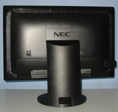 Der NEC 20WGX2 hat mit seinem silbernen, leicht abgerundeten Rahmen und dem schwarzen Standfuß ein durchaus gefälliges Design. Im Gegensatz zur Vorderseite ist die Rückseite des Monitors ebenfalls schwarz.