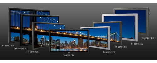 Neue HD und Full HD Professional Plasma Displays von Panasonic. (Foto: Panasonic)Die ab sofort verfügbaren neuen HD Modelle TH-42PH11EK/ES (1.024 x 768 Auflösung) und TH-50PH11EK/ES (1.366 x 768 Auflösung) sorgen mit ihrem gesteigerten Kontrastverhältnis von 15.000:1 und 4.096 Graustufen für noch tiefere und sattere Schwarztöne und gestochen scharfe Bilder. Zudem konnte die Helligkeit auf 1.400 cd/m2 gesteigert werden. Die 11er-Serie der HD Displays besitzt außerdem ein neues Blenden-Design. Auch hinsichtlich der Lebensdauer legt Panasonic die Messlatte noch einmal höher: Die neuen Displays haben nun eine Betriebsdauer von 100.000 Stunden. Das entspricht einer Steigerung von 40.000 Stunden verglichen mit der Vorgänger-Serie.