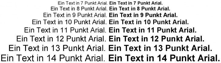 Für den Selbsttest empfehlen wir daher, eine Textdatei mit verschiedenen Schriftgrößen zu erstellen (am besten Arial als Schriftart), die Datei als PDF auszugeben und dann in einem PDF-Reader bei 100%-Skalierung anzuschauen. Zuvor sollte man in den Einstellungen des PDF-Readers auch noch alle Render-Verbesserungen wie „Text glätten“, „Dünne Linien deutlicher darstellen“ etc. deaktivieren. Insbesondere beim Buchstaben „A“ und der Zahl „4“ kann man dann aus nächster Nähe die Treppeneffekte sehr schön erkennen.