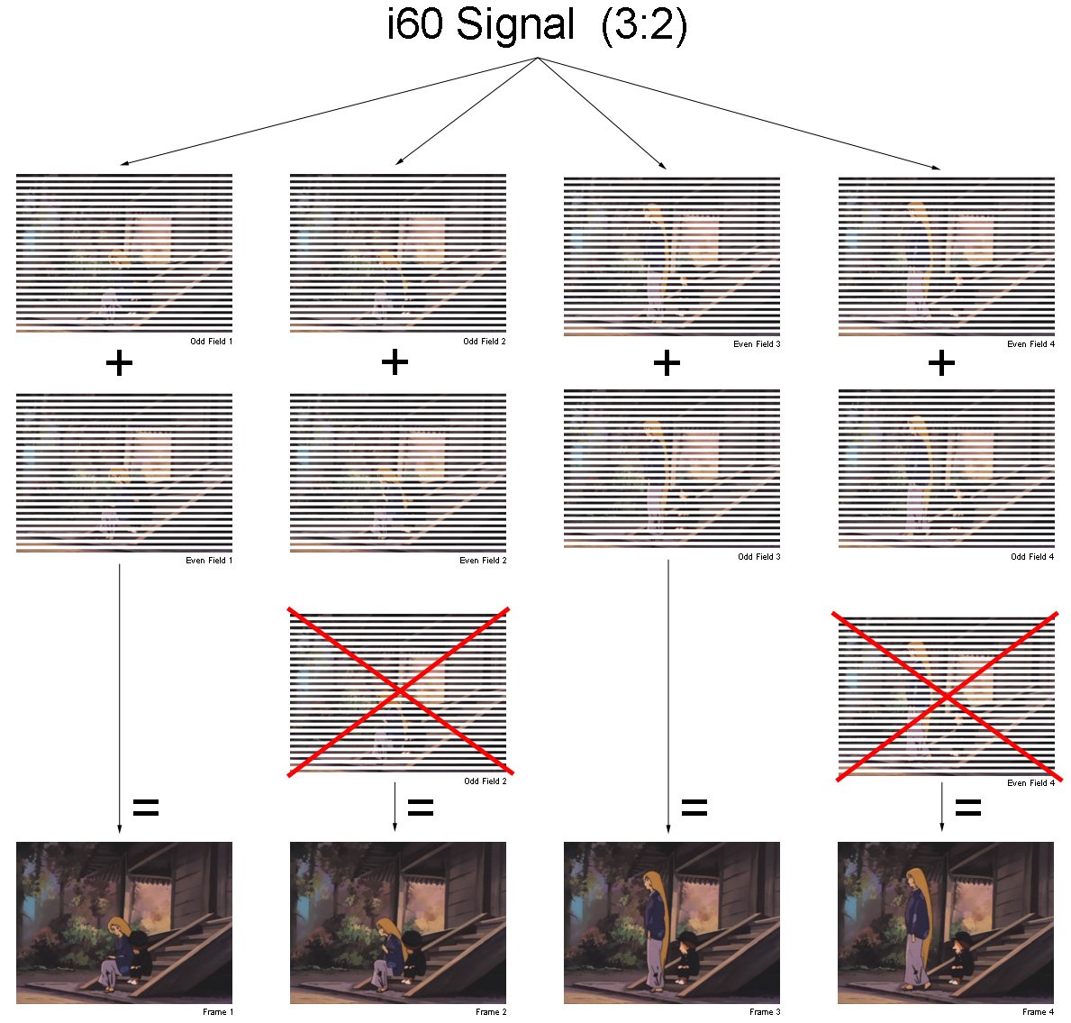 Wie aus einem Interlaced-Signal die erforderlichen Frames gewonnen werden, soll im folgenden Abschnitt erklärt werden. Jetzt wird auch deutlich, warum so genau zwischen Film- und Videomaterial unterschieden werden muss.