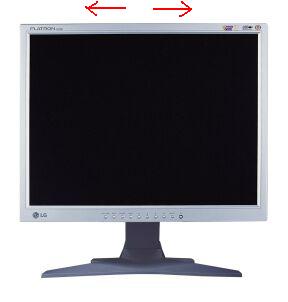 ich habe seit heute einen LG1710P TFT, muss dazu anmerken das es mein erster TFT ist. Nun meine Frage, kann man den Monitor bzw. das Panel auch um die vertikale Achse drehen? Also ich meine nicht die Pivotfunktion, sondern nach links oder rechts drehen ohne dabei den Fuß bewegen zu müssen;-) Als ich den Monitor aufgestellt habe ist mir nämlich aufgefallen das trotz korrekt ausgerichtetem Monitorfuß das Panel nicht richtig zu mir zeigte und eine kleine Rechtsdrehung aufzeigte. Ich hab es dann in die mittige Postition zurückgedreht und hoff das ich dabei nicht denn Monitorfuß beschädigt habe denn der Mann von der LG Supporthotline sagte mir das das Drehen nach rechts oder links nicht möglich sei. Wäre dankbar wenn mir einer dazu näheres sagen könnte. Habs mal an einem bild verdeutlicht.