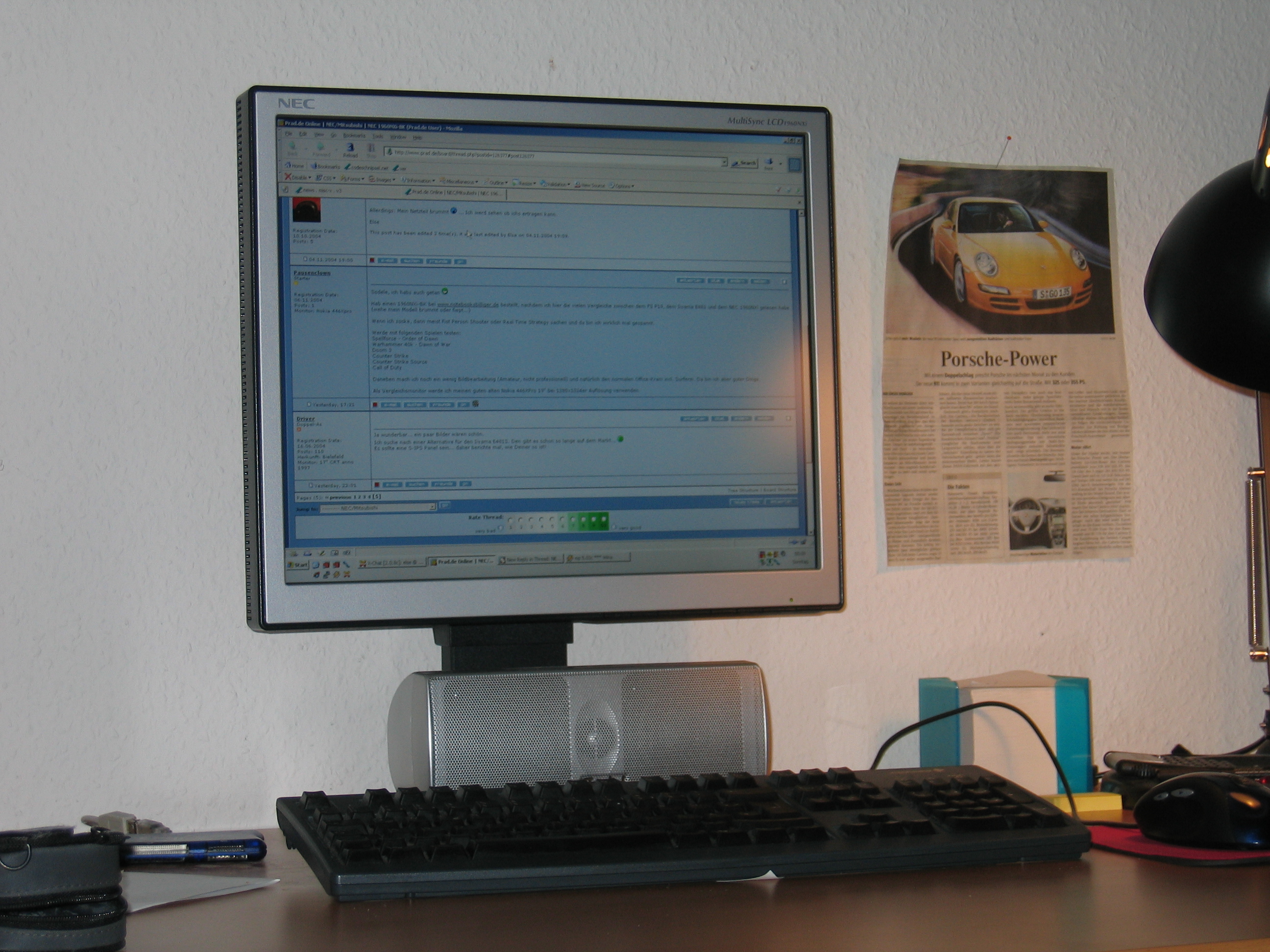 Ich wollte einen schnellen (Reaktionszeit), günstigen und auch gorssen TFT. Alles unter 19" war mir zu klein, obwohl ich auch den einen oder anderen 18"er in Betracht gezogen habe. Ich wollte einfach auch einen TFT, der zum Zocken geeignet ist und das sind wirklich nur wenige. Da ein Freund von mir einen Acer gekauft hat und ich gesehen habe, welchen Schrott er da am Tisch stehen hat (war zwar günstig, aber glücklich wäre ich nicht), hab ich entschieden ein wenig mehr auszugeben. Letzten Endes hatte ich den NEC 2080 UX+ am Tisch stehen. War ein geiles Teil bis auf die Tatsache, dass dieser TFT diese bekannten horizontalen Streifen aufwies. Ich wollte anfangs damit leben, aber das damit Leben dauerte gerade 4 oder 5 Tage ![]()