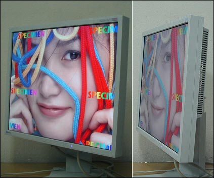 Der Blickwinkel ist tatsächlich etwas (nur ganz bißchen!) enttäuschend. Ich erinnere mich, dass mir die Blickwinkelveränderungen bei IPS-TFTs etwas besser gefallen; bei stärkerer Neigung tendieren die MVA/PVAs eher zu einer Aufhellung und Kontrastminderung in diesem Zuge. Bei den IPS-TFTs, die ich bislang kennengelernt habe, gibt es eher eine leichte Abdunkelung; alles in allem angenehmer. Allerdings kein echtes Kriterium für mich.