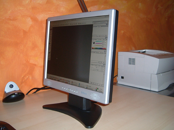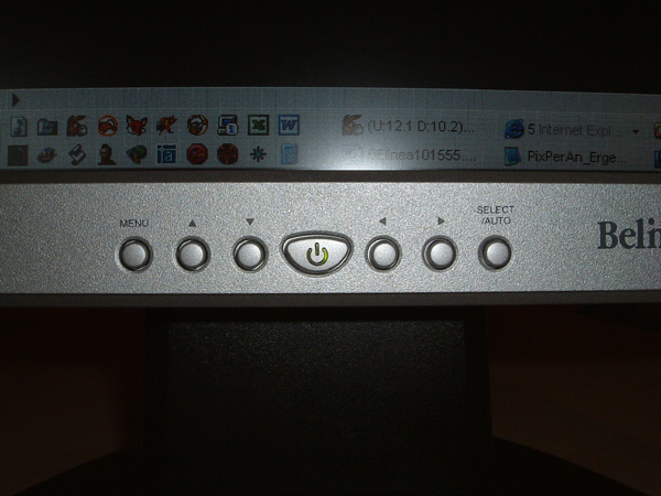 Einschalten, Select/Auto-Taste betätigen und schon sieht man ein erstaunlich gutes kontrastreiches und farbenfrohes Bild vor sich. Die Bildausleuchtung bei meinem Modell ist gut und gleichmäßig. Der Schwarzwert sowie die Farben sind im direkten Vergleich zu einem VA Panel etwas schwächer, aber immernoch sehr gut. Trotz dieser Erkenntnis bin ich erstaunt über die doch Recht gute Bildqualität dieses kleinen TFTs, und das nur über einen analog-Anschluss! Das größte Problem ist für mich persönlich der Blickwinkel. Dieser ist für mich eindeutig zu gering im horizontalen Bereich. Leider bemerkt man aufgrund der kleinen Bildschirmdiagonalen jeden schwenk mit dem Kopf. Dieser wird sofort mit unterschiedlichen Farbspielen die von hell zu dunkel gehen bestraft. Sitzt man gerade davor und surft oder spielt ist davon nichts zu merken. Wichtig ist wirklich bei einem solchen Panel dieser Größe das man sich seinen Arbeitsplatz so einrichtet das man so wenig wie möglich mit dem Kopf hin und her schwenken muss. Bei einem 17 Zoll TN Panel hat man da einfach ein wenig mehr Spielraum.