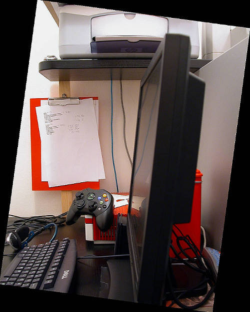 Da es schon so viele Tests über das Gerät gibt und ich noch zur Zeit mit D-Sub meinen Iiyama betreibe (Schande über mich mit ner 9800pro *g*), ihn aber auch erst seid heute habe, wollte ich mal ein paar relativ aussagekräftige Fotos von dem Ding online stellen, da vor allem ich persönlich viel mehr Bilder sehen wollte als ich mich für das Gerät entschieden hab. Die Fotos hab ich mit Digitalkamera auf meinem neuen Arbeitsplatz gemacht (man ich liebe schwarz *g*)
