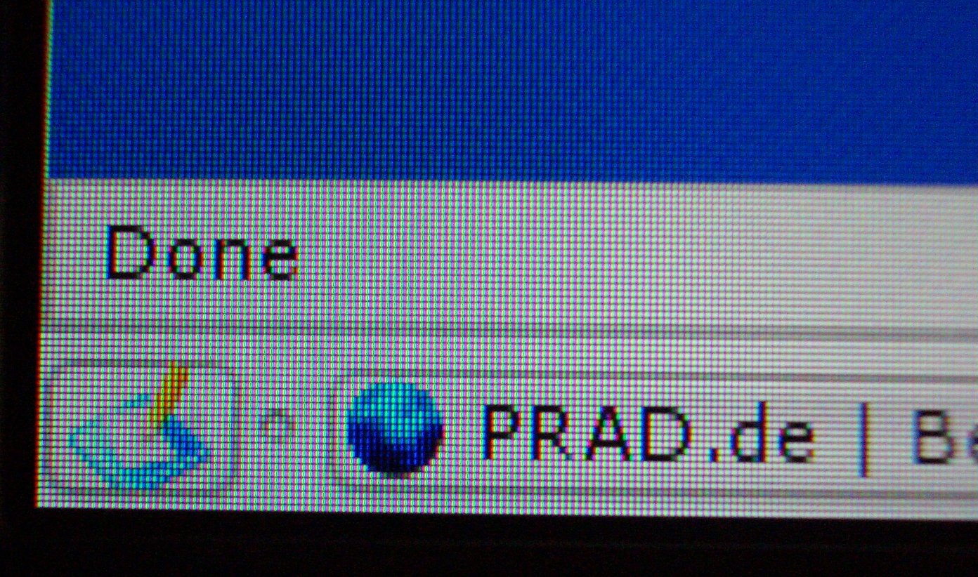 Nach langer Suche habe ich am Rand einen defekten blauen Subpixel entdeckt. Ist nicht weiter auszumachen ausser man sucht danach auf blauen Hintergrund. Aber bei 1600x1200 Pixel ist das kein Problem. *g*