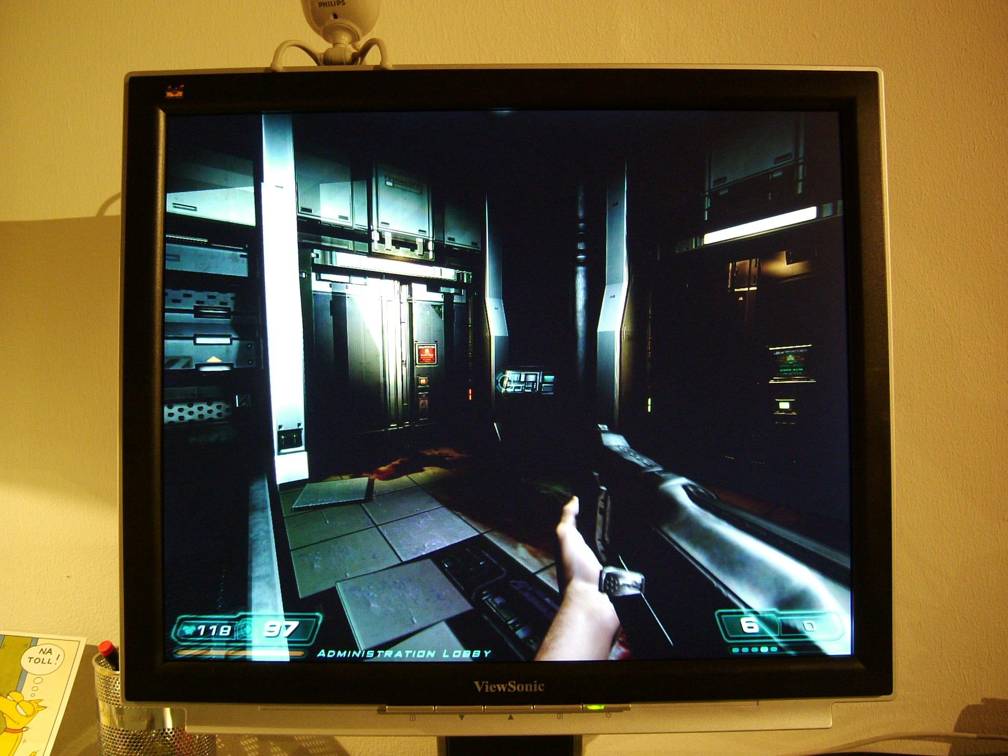 Doom 3; Sehr gutes Schwarz, gestochen scharfes Bild, keine Schlieren, aber auch hier trotz Erhöhung des Gammawertes noch recht dunkel, trotzdem sehr gute Grafik!