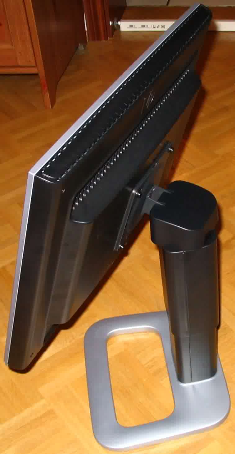 Das Panel läßt sich ausreichend neigen und zwischen 4,5 und 15,5 cm (Unterkante TFT zu Tischplatte) in der Höhe verschieben. Die Federspannung ist gut austariert, so dass eine Höhenänderung problemlos möglich ist, ohne dass das Display sich von alleine heben oder senken würde. Insgesamt macht die Konstruktion einen sehr stabilen Eindruck, der Displayrahmen ist stabil und liegt eng auf (keine durchscheinenden Lichteffekte o.ä.)