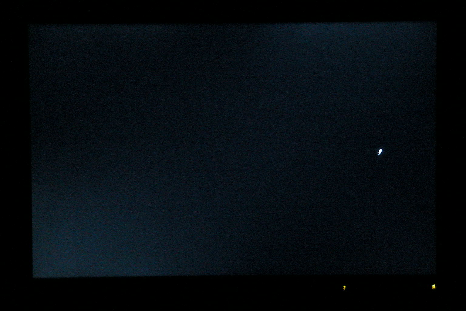 Der zweite ein a01 FEB05 hat sehr wenig Ausleuchtungsprobleme, nur oben rechts ist immer noch minimal was zu sehen, mich stört es nicht. Auf schwarzen Grund ein dicker weisser Pixel, auch von weiten zu sehen, dazu kommen noch zwei nur von nahem sehbare.