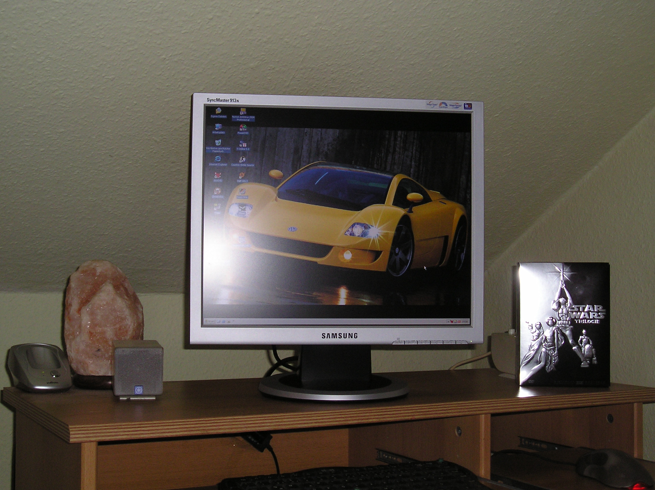 nachdem ich mich so positiv und mit überschwänglichen lobeshymnen über das gerät geäußert habe, mag man sich fragen,wo sind die schwächen des samsung 913n versteckt. gut ich habe nur crt erfahrung, und weiß nicht wirklich ob das schwächen sind,die mir aufgefallen sind.nun, wenn man zu dicht vor dem tft sitzt abstand ca. 40cm fängt der monitor vom linken und vom rechte bildrand an etwas dunkler zu werden. ca 5%. sobald man aber dem gerät den gebühreneden abstand von ca 50-60cm zollt verschwindet dieser effekt und der tft strahlt ein gleichmäßiges weiß an den betrachter. was mir auch auffällt ist das man dem gerät absolut zentrisch gegenüber sitzen sollte,ist das nicht der fall und man sitzt zu weit unterhalb des tft`s wird das bild am oberen bildrand leicht dunkel ca 5% und leicht verschwommen. sobald der betrachter seine kopfposition wieder mittig hält verschwindet auch dieser umstand. ich glaub ich benötige einen neuen stuhl. ;).