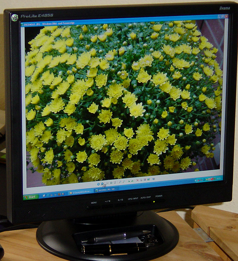Zu kämpfen habe ich mit der richten Einstellung des Monitors. Nach Update des Grafikkartentreibers (NVIDIA GeForce4 Ti 4200) und nach viel ausprobieren habe ich jetzt eine gute Einstellung gefunden und Fotos werden je nach Bildquali super dargestellt. Jedoch habe ich das Gefühl, wenn das Foto nicht so gut ist oder bei schwachen Licht aufgenommen wurde, dann weisen die dunklen Stellen auf den Fotos Flecke auf. Ich würde jetzt mal sagen, das der 485 schlechte Image-Qualität sehr deutlich vorbringt. Das wird auch sichtbar bei stark komprimierten JPGs. Sicher kann man das auch noch per Einstellung weg bekommen.. ;)