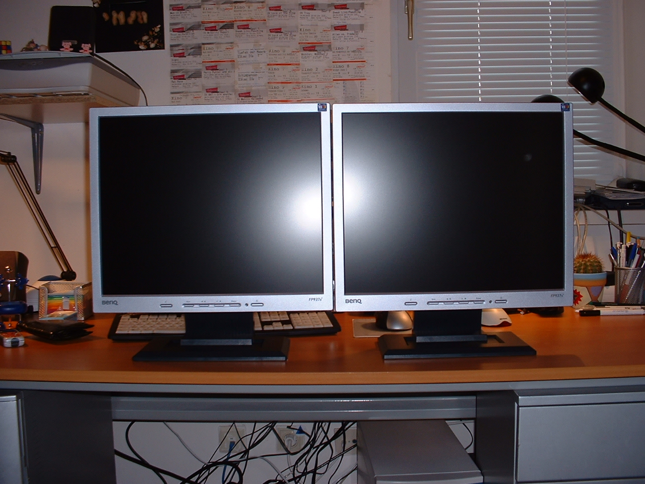 ok, wieder dualscreen konfiguriert und X gestartet. wow! nicht schlecht. ich muss sagen, dass dies meine ersten TFTs überhaupt sind, habe jedoch schon auf einigen verschiedenen gearbeitet (HP und philips vor allem).