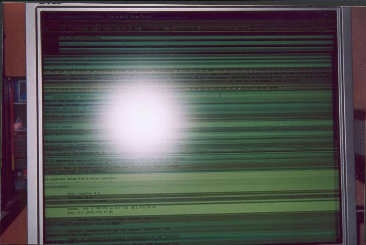 Da ich keine Kompromisse eingehen wollte mit einem Monitor von über 1100 €, habe ich das Problem gemeldet. Das war nicht so einfach. Online möchte DELL die Tagnummer des PCs haben (eine ID die jeder Dell Pc hat). Ein Monitor hat dieses Tag nicht. Da das System keine Seriennr vom Monitor annahm habe ich mails an allen möglichen Adressen gesandt. Nach zwei Tagen erhielt ich eine Antwort vom Support - jedoch sie konnte mit meinen Angaben nichts anfangen (Kundennr - Rechung - usw..). Nach weiteren Emails und Tagen, hatten sie mich endlich gefunden und rieten mir den Tech-Support anzurufen um Ihnen das Geräusch am Tel hören zu lassen. Wie gesagt so getan. Nach 15 Min am Telefon und 5 Weiterleitungen hatte ich einen am Apparat der sich um mich kümmerte. Aber auch er konnte mich nicht in seinen "Unterlagen" finden. Nach weiteren 10 Min hatte er mich gefunden (Anruf nach Franreich über Brüssel - 30 Minuten lang). Ihm das Geräusch hören lassen, könnt ihr euch vorstellen ??? Kurz um er sagte mir ich bekäm einen anderen. Jemand würde meinen Abholen und erstezen. So wars dann auch, am 24.12.2002 um 15.00 Uhr stand ein Techniker vor der Tür. Ich erhielt einen anderen 1900FP. Ob er neu ist kann ich nicht beantworten. Auf jeden Fall waren die Kabel noch verschweisst und er hat keine Gebrauchsspuren.