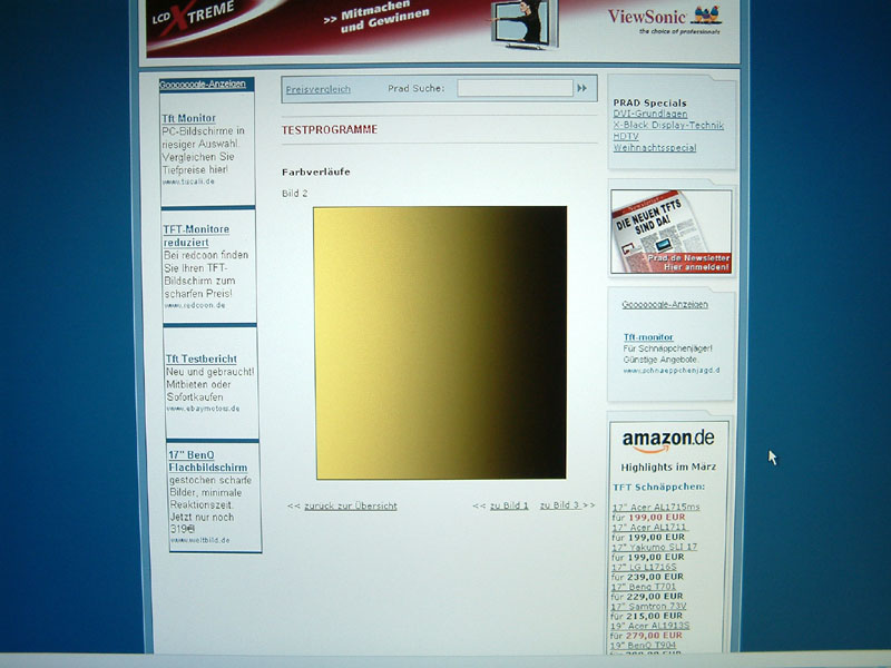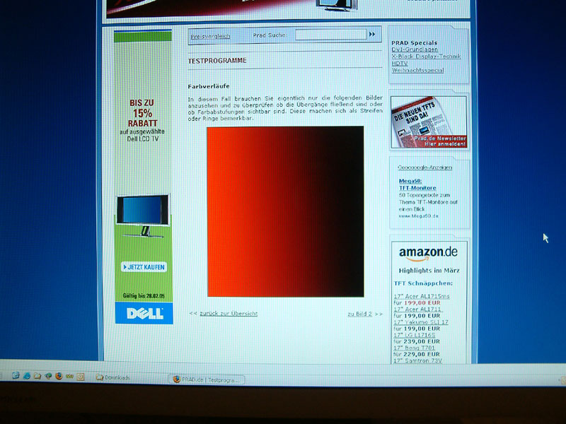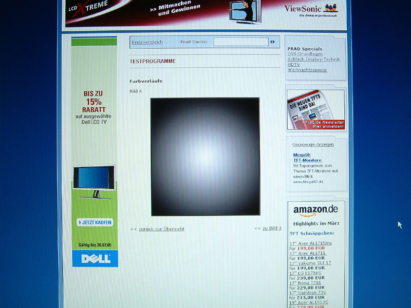 Ich werde besonders diesen Sachverhalt nochmal mit meinem R51 vergleichen, aber die Hintergrundbeleuchtung ist beim 1970GX wirklich sehr stark. Die Gammawerte über die Grafikkarte runterzuregeln bringt auch nichts, weil es eben die Hintergrundbeleuchtung ist, die auf einem sehr hohen Niveau arbeitet. Anders wären natürlich auch die knackigen Farben nicht möglich, es ist also ein Kompromiss.
