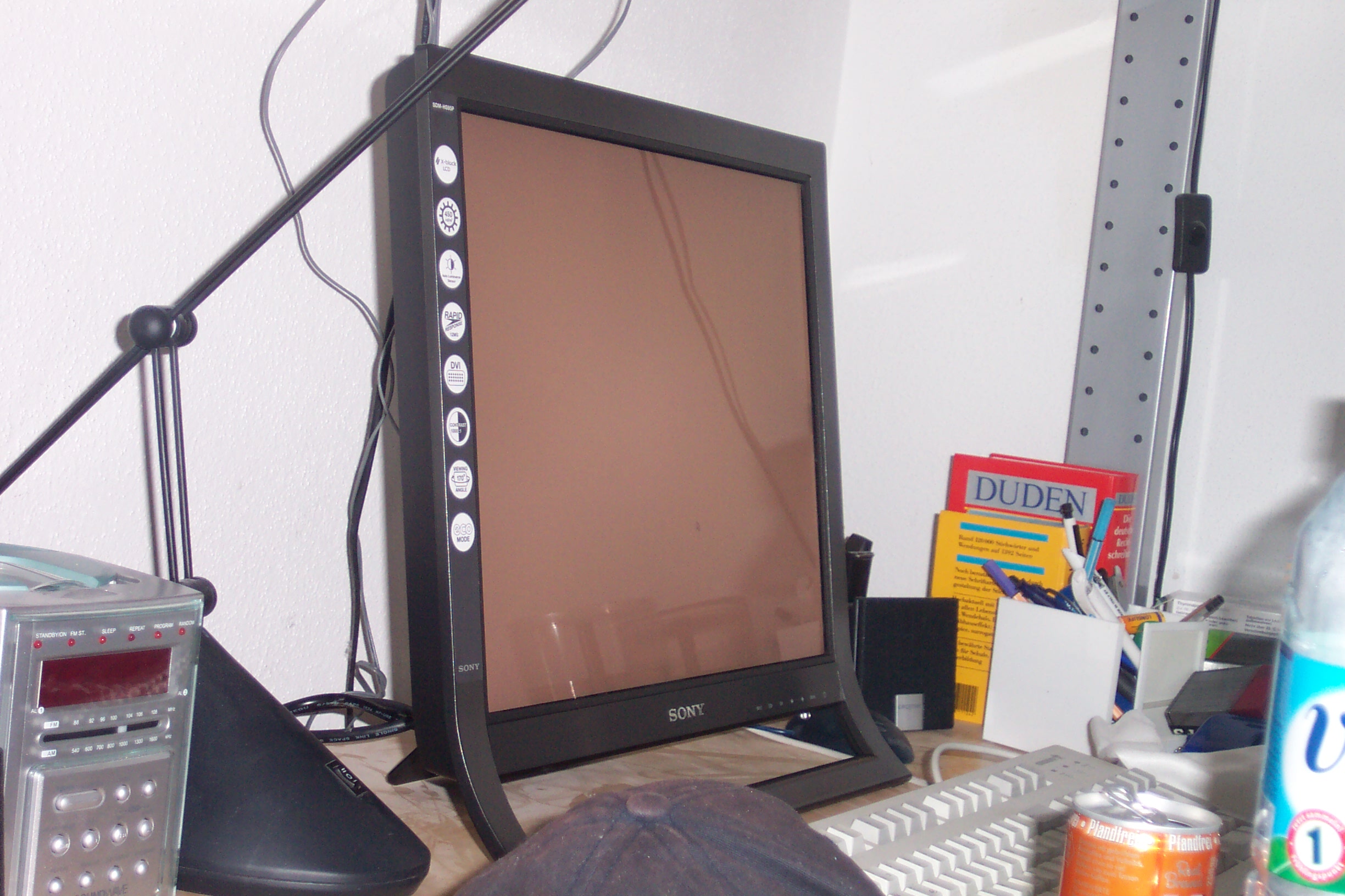 • nein glaubs mir das schwarze modell hat ein tn. es steht bei mir auch nichts von einem mva in der anleitung. und die effekte die du meinst kenn ich nicht. ich habe gerade einen 3Stunden "Republic Commando" Dauertest hinter mir und konnte keinerlei Schlieren feststellen. Auch die freundlichen Leute von Mindfactory versicherten mir das der hs95pb ein TN panel verwendet. Aber es werden eh noch mehr fotos folgen wo man auch noch besser sieht das der blickwinkel mißerabel ist sprich einen starken Gelbstich hervorruft bei seitlicher Betrachtung. Nehmt doch mal das Schlierenbild und vergleicht es mit dem Bild des hs94pb (hier im Forum ist ein Test des hs94pb veröffentlicht wobei der Verfasser die selben Einstellungen vorgenommen hat wie ich), ihr werdet feststellen das schlierentechnisch wenn überhaupt nur ein marginaler unterschied festzustellen ist. Sony HS94P (Prad.de User)
