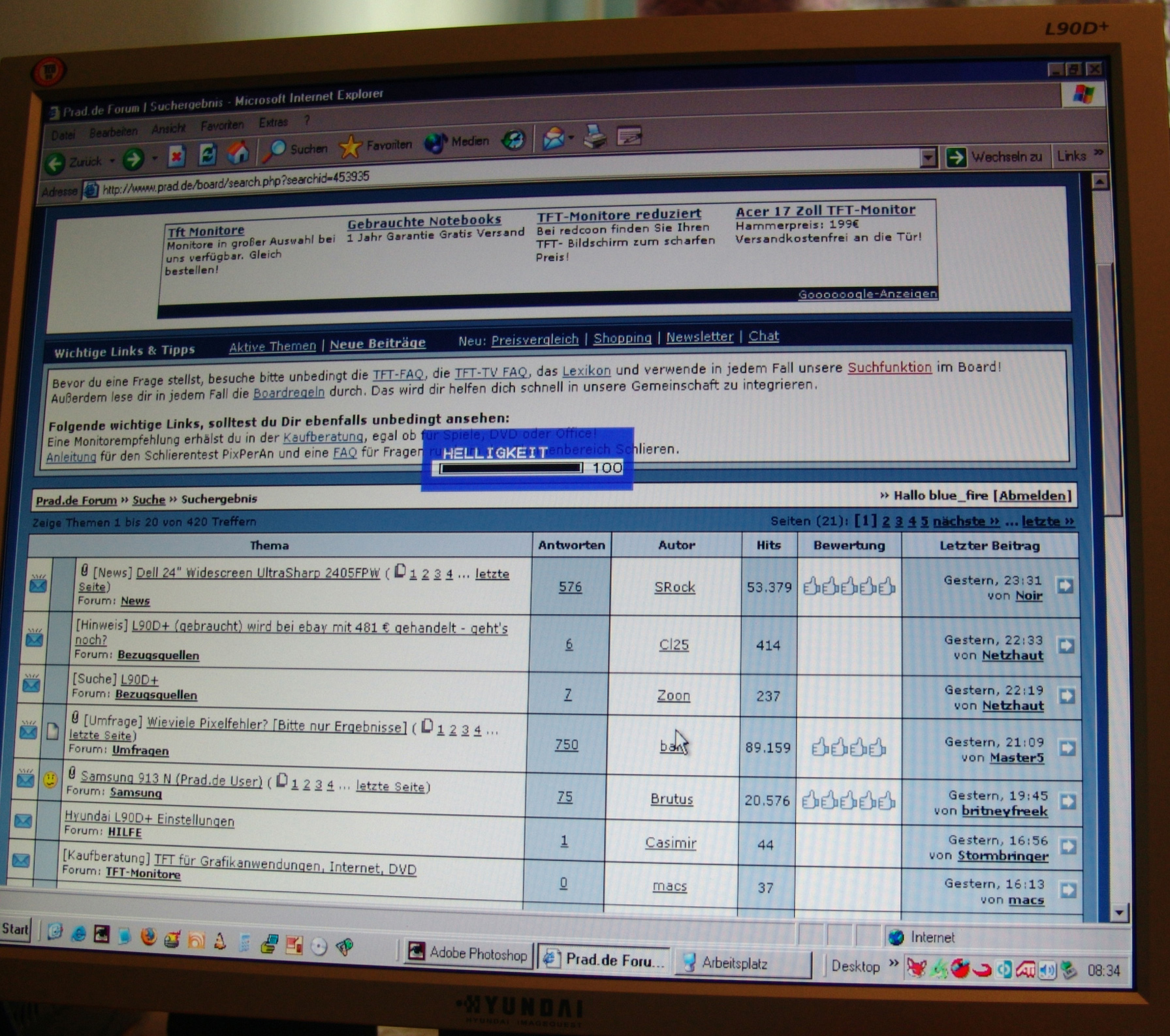 naja ich sags mal so ein bild sagt mehr als 1000 worte und als beweiß habe ich noch den osd mit angemacht wie gesagt beides exakt die selben einstellungen noch anzumerken der L90D+ ist über Dvi der videoseven über den normalen vga anschluss