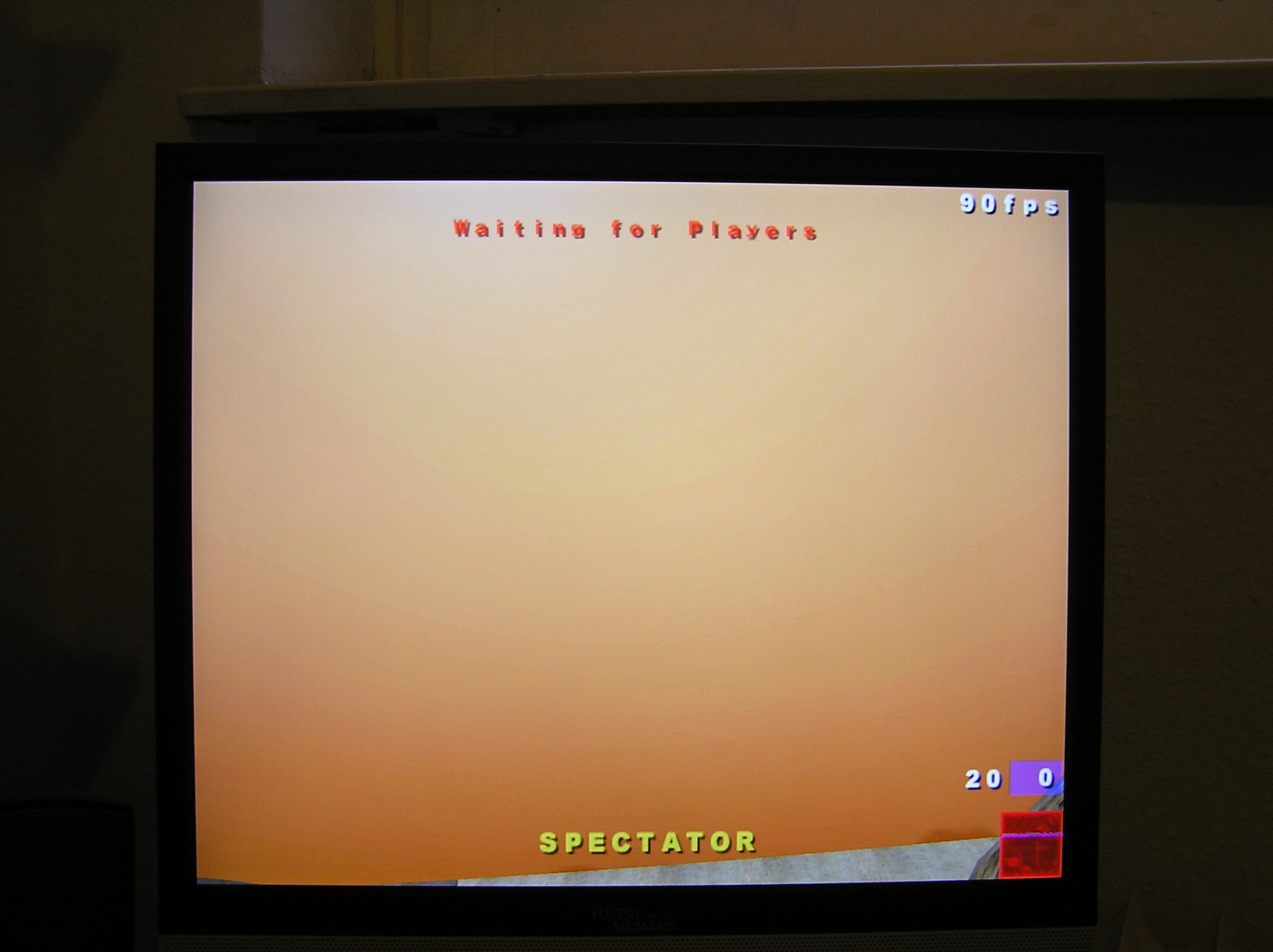 CiTay, in Doom3 ist r_gamma=1 eingestellt und der Monitor hat Helligkeit 21, Kontrast 49. Aber das Foto ist etwas überbelichtet aufgenommen. Es ist dort auch deswegen so hell, weil ich fast im Feuer stehe. ![]()