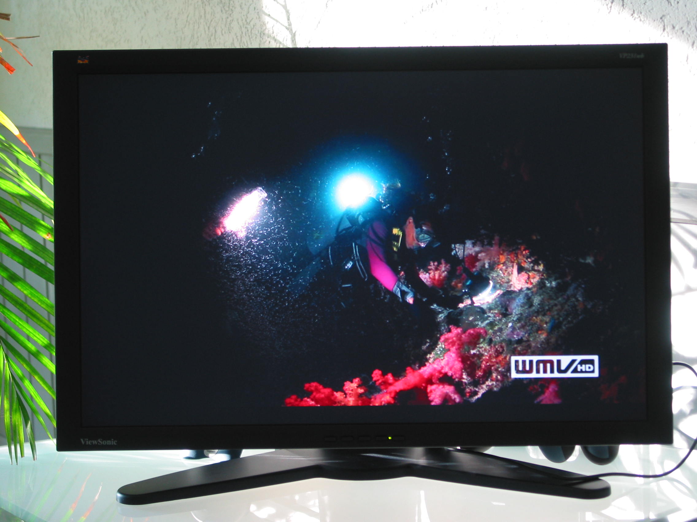 Da ich bisher die letzten Jahre mit meinem 19" Samsung CRT gearbeitet habe, war der erste Eindruck natürlich überwältigend. Gegen den ViewSonic schaut mein alter Samsung wie ein Kofferfernseher aus. =)