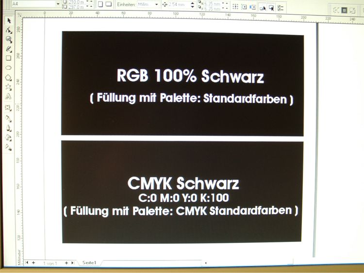 Besonders das schwarz in CMYK Füllung ist jetzt ein Grau !