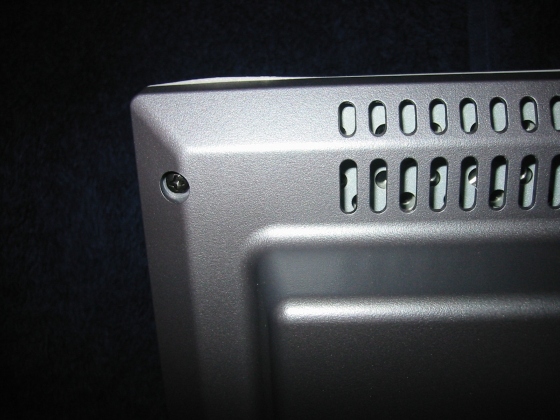 So weit so gut. Als ich den Monitor bekommen und ihn mir angesehen habe, war ich etwas von der Verarbeitungsqualität enttäuscht. Der Rahmen ist an sich rundherum "wellig" und wirft an einigen Stelle "Beulen" (ich habe mal versucht, dies einzufangen und der besseren Darstellbarkeit halber mal ein Foto von hinten gemacht).