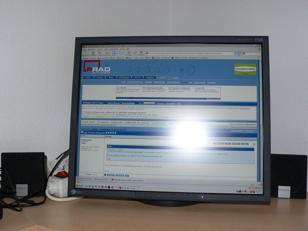 Ich habe heute auch meinen S1910 bekommen, mein erster TFT und bin auch sehr zufrieden. Das Blickwinkel-Problem empfinde ich nicht als störend. Wenn mich an diesem TFT etwas stören sollte, dann die Bewegungsunschärfe. Sie ist zwar nicht so stark, wie ich es zu Anfang erwartete, aber dennoch leicht störend.