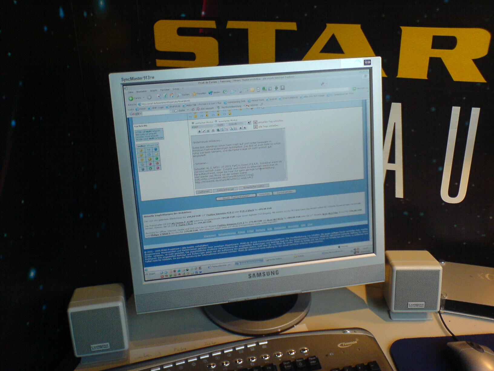 Gutes Bild. Allerdings schon beim Kopf rauf und runter bewegen in Windows Farbveränderungen feststellbar. Das Bild ist auch nicht so schön ruhig wie beim Siemens, und die Farbe kriege ich nicht wirklich gut eingestellt.