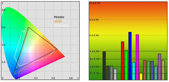 Das angehangene Bild zeigt die Farbabweichungen des Samsung 770P im Auslieferungszustand ohne Kalibrierung, bezogen aus den sRGB Farbraum. Der Tester bei Behardware betont, dass die Farbabweichungen der Voreinstellungen schon bemerkenswert gut sind.