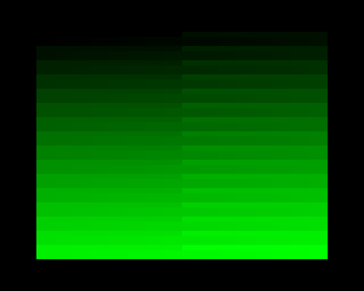 Folgende Testbilder habe ich gebastelt, um die Kontrasteinstellungen und Schlierenbildung des Monitors zu testen. Die Verläufe haben einen extra breiten Rand, um der Lichteinstreuung an den Ecken zu entgehen. Es gibt 16 Zeilen mit jeweils 16 Abstufungen. Über jeder Zeile befinden sich außerdem zwei Balken, der linke entspricht der Farbe der ganz linken Abstufung, der rechte entspricht der Farbe der rechten Abstufung. Somit kann man anhand der Balken den Farbverlauf auch noch dann erkennen, wenn das Auge zwischen den einzelnen Stufen schon keinen Unterschied mehr ausmachen kann.