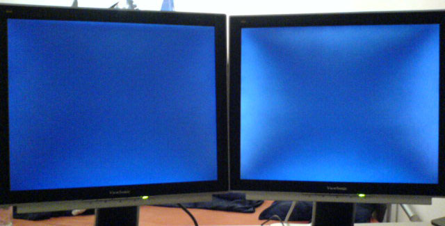 Hab mir vor n paar Wochen einen VX924 gekauft. Da ich sehr zufrieden damit war, kaufte ich mir gestern einen zweiten um Dualmonitoring zu betreiben. Als ich die zwei nebeneinander aufbaute musste ich leider feststellen dass mein erster (rechts im bild) komische Seitenbeleuchtungen aufweist.