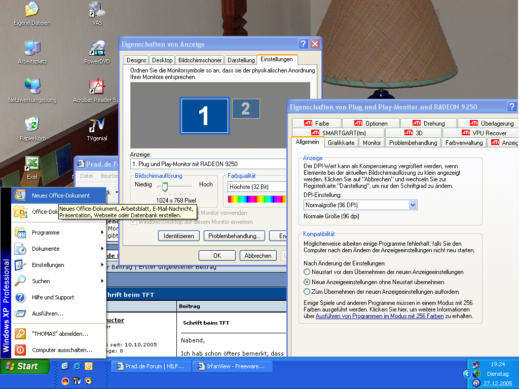 ist schon kurios. Hab ein wenig mit den Einstellungen vom TFT gespielt und hab es hinbekommen. Jetzt hab ich heut morgen die Einstellung nocheinmal gesucht, um sie euch zu nennen und nun ich finde sie nicht mehr. Bin mir auch mitlerweile nicht mehr sicher, ob ich es über die Einstellung vom Monitor oder doch über Windoof gemacht habe. *kopfschüttel* (zu lange Feiertage :) )