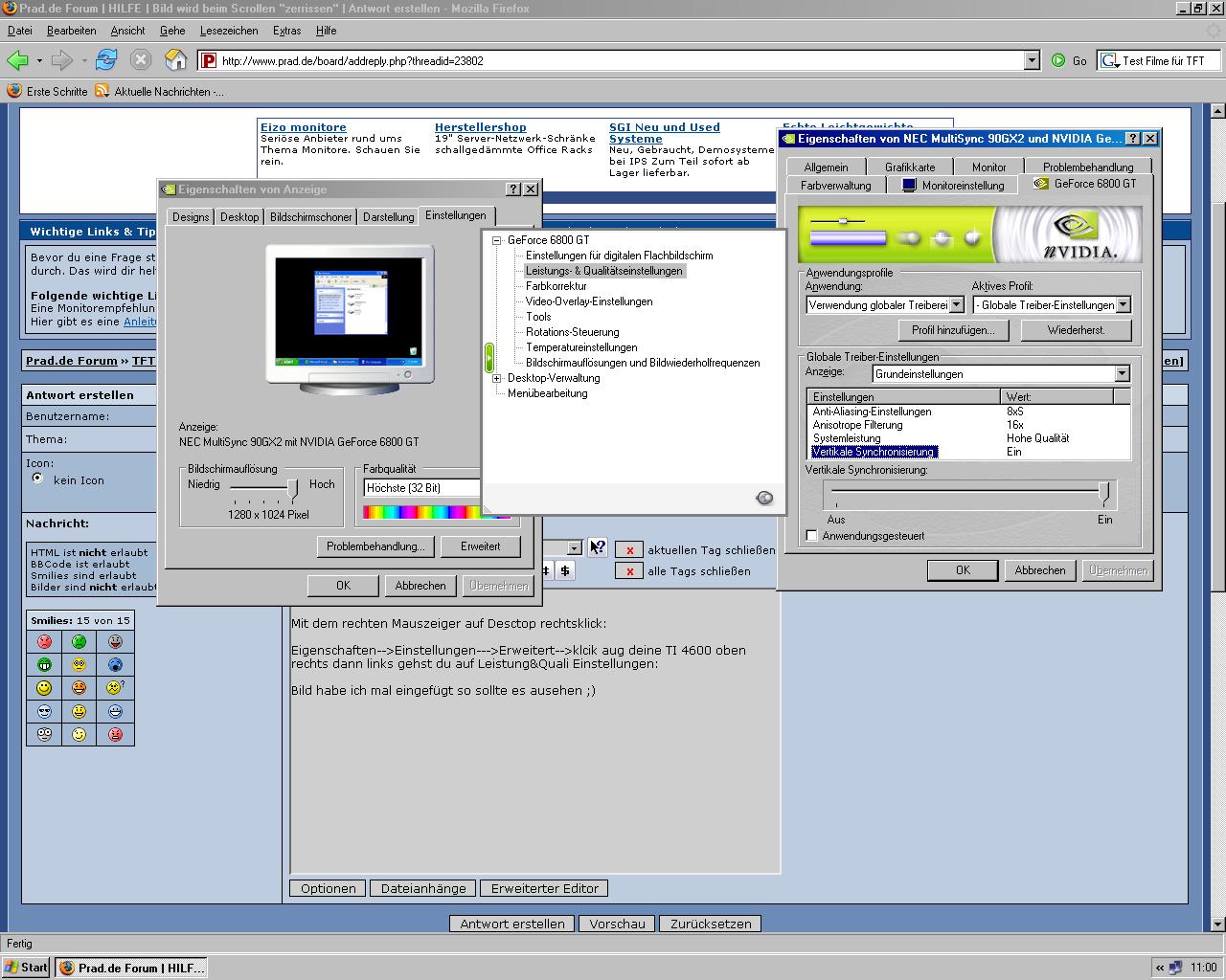 also ich hab en 17 Zoll Tft (NEC LCD 1770NX-BK), und eigentlich war bis jetzt alles in Ordnung, nur heute morgen ist mir irgend wie aufgefallen, das wenn ich im Internet Seiten scrolle, eine Linie sichtbar wird und der Teil links von der Linie "stehen bleibt" und der rechts immer so komisch nachzieht...