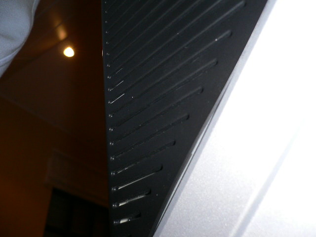 Jetzt ist bei mir hinten rechts der Rand der schwarzen Verkleidung nicht richtig mit der silbernen Verkleidung verbunden. Soll heissen, wenn ich von der Seite dranschaue hab ich nen kleinen Spalt (weil das Material absteht).
