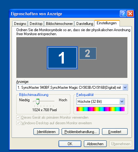 • Ein 19" hat eine native Auflösung von 1280 x1024, also sollte man den 940BF auch in dieser Auflösung betreiben. Als Bildwiederholrate stellst du 60 Hz ein.