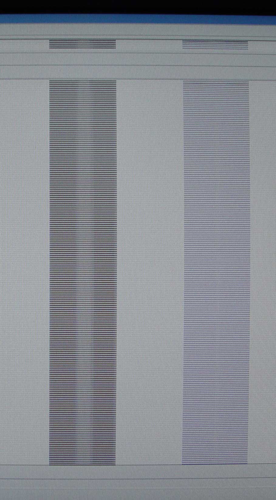 Nun bin ich darauf aufmerksam geworden, dass die Steckdosen (3) bzw Netzwerkdose hinter meinem Bildschirm schuld sein könnten und habe eine kleine Versuchsanordung erhalten. Trotzdem gibts noch immer in 65000K einen Streifen (siehe Fotos), bei "Benutzer-Farben", wo alles nicht ganz so hell ist, treten diese nicht auf.