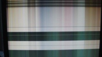 Nun fiel er plötzlich von einer Sekunde auf die andere aus. Das Bild besteht nur noch aus unkenntlichen bunten, hellen und dunklen Streifen.