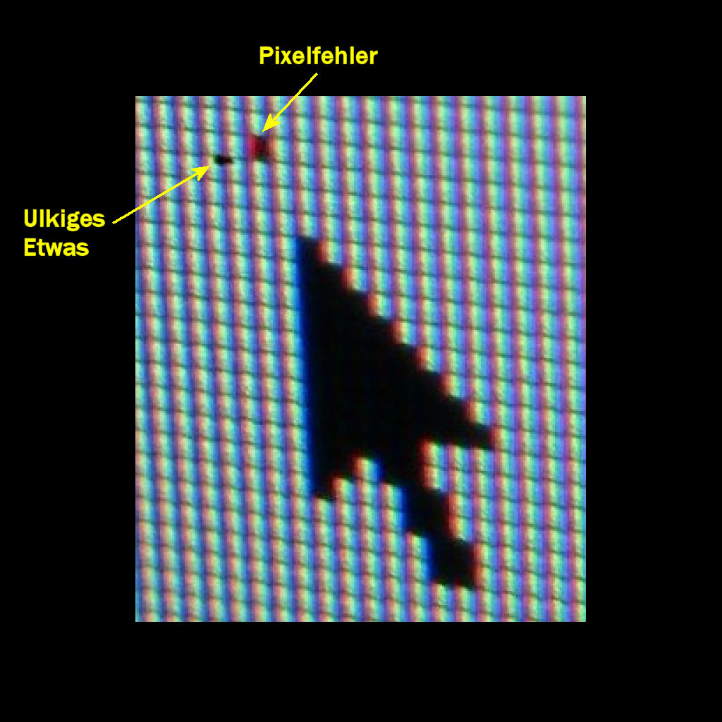 Sofort nach dem Auspacken und bestaunen und testete ich das Gerät auf Pixelfehler. Da fiel mit in der mittleren Linken hälfte ein Pixelfehler aus. Soweit nicht so schlimm.
