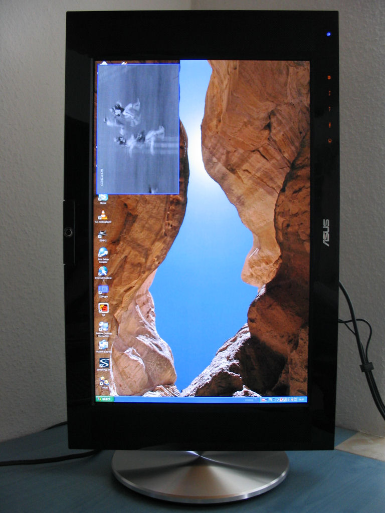 Die Pivotfunktion funktionierte auf meinem Rechner nicht sofort da die mitgelieferte Software nach dem Installieren mit der Auflösung und dem gedrehten Display durcheinander kam. Die Catalyst Treiber von ATI haben jedoch keine Probleme und arbeiten super im Pivotmodus. Alle Anwendungen funktionieren hier super bis auf einige Spiele die mit der Auflösung nicht klar kommen. Allgemein ist die Pivotstellung sehr praktisch wenn man viel Platz nach unten braucht.