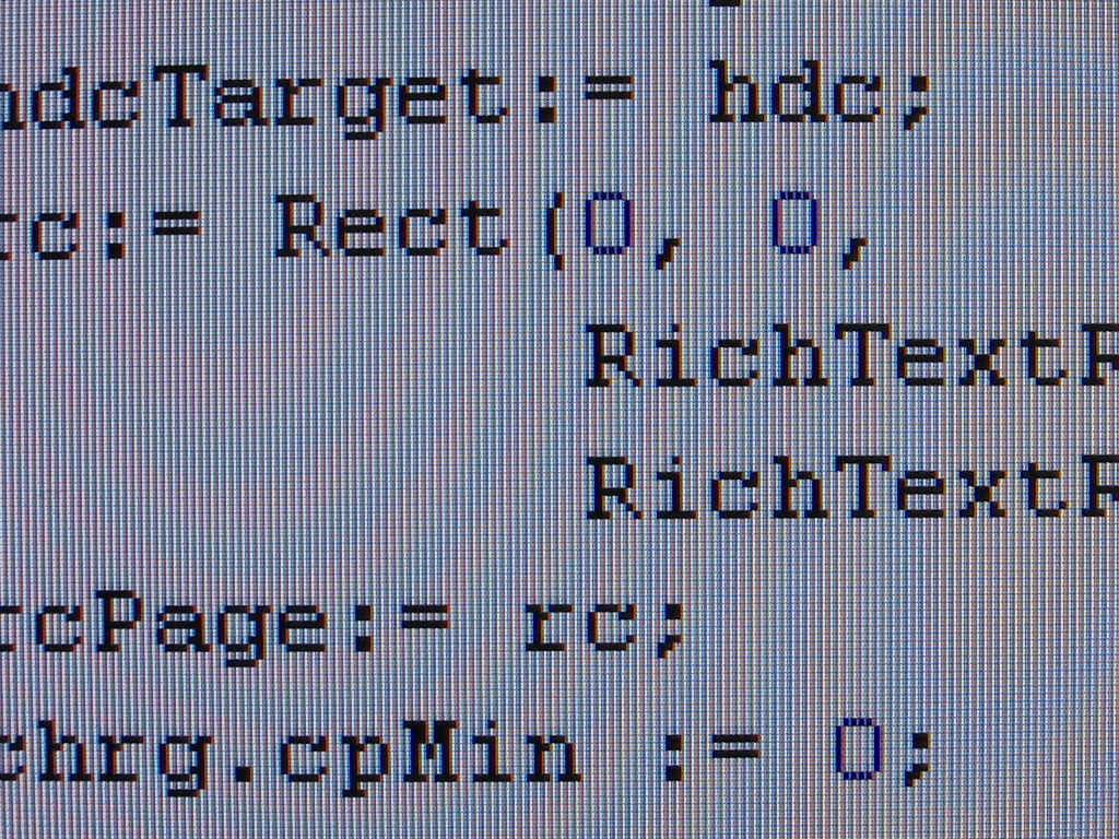 Die Darstellung ist im Pivot etwas unschärfer. Ich finde das Bild hier aber eindeutig angenehmer für meine Augen als im Landscape-Modus. Ich kann es schwer beschreiben, das Bild wirkt wie die Interleased Darstellung bei damaligen VGA Grafikkarten aber angenehm.