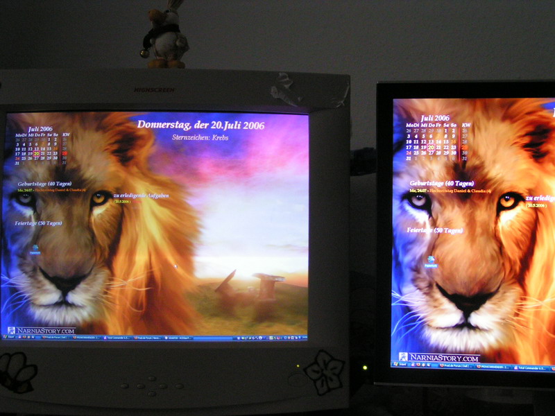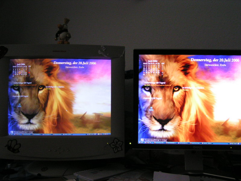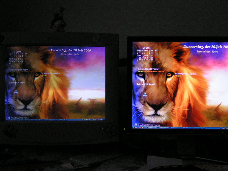 Ich bin hin und weg. Habe jetzt meinen alten 19" CRT danegen stehen und muß sagen, das sind Welten. Sehr kräftige Farben und eine super Helligkeit. Und dabei habe ich alles zur Zeit nur auf Werkseinstellung. Für das feine nehme ich mir später noch Zeit.