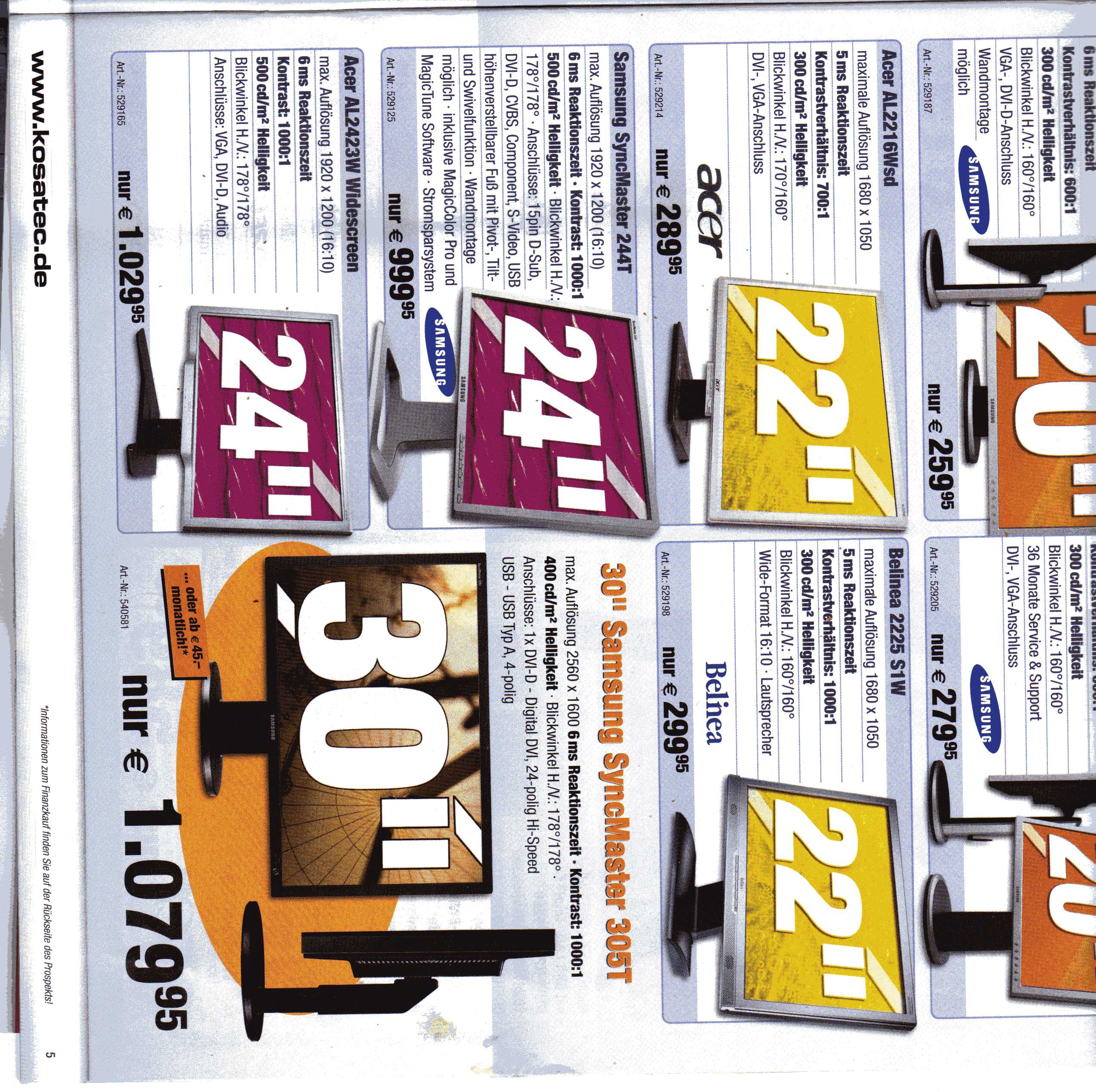 Sowie in der nächsten c't (Heft 13/2007), welche am 11. Juni erscheint. Darin wird es einen großen Vergleichstest ausschließlich über die aktuellen 30-Zoll-Monitore geben. Der 305T ist da sicherlich auch mit dabei.