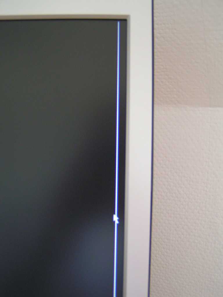 jetzt habe ich seit ein paar tagen an der rechten bildschirmseite in ca. 0,5cm abstand zum rand einen 1px breiten vertikalen streifen von ganz oben bis ganz unten. der ist allerdings noch nicht immer da gewesen - das kann ich sicher sagen. irgendwann kam er ab und zu mal und jetzt seit gestern ist er dauerhaft zu sehen (habe euch ein foto angehangen). dabei ist die farbe nie konstant sondern wechselt ab und zu mal.