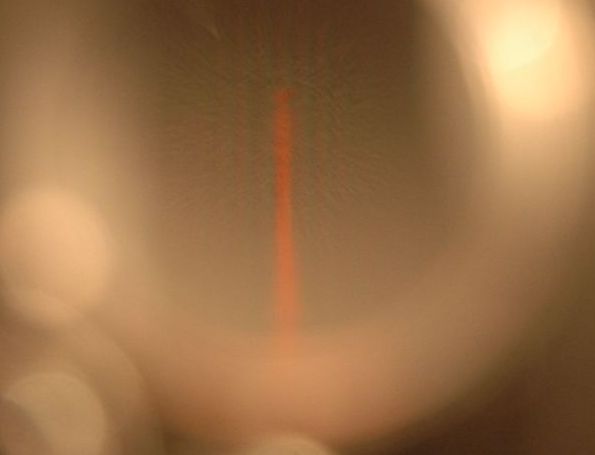 vorgestern habe ich jedoch nach einem kurzen urlaub einen bildfehler entdeckt den ich zunächst für einen massiven pixelfehler hielt (ca. 9 pixel direkt in linie übereinander), nach betrachtung durch eine lupe jedoch feststellte dass irgendetwas irgendwo zwischen den schichten des schirms stecken muss.