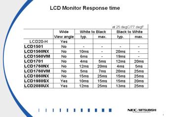Reaktionstabelle zu TFT-Monitoren von NEC-Mitsubishi