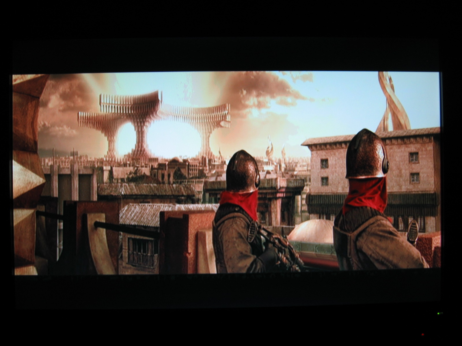 HDMI-DVI: Was hier sofort auffällt ist das der Lenovo ohne weiteres ein 720p Signal mit 50Hz entgegennimmt. Zuspielung mit 1080i Signal blieb wie erwartet erfolglos. Wird vom Monitor nicht erkannt. Bin mir nicht sicher ob andere PC-TFT das auch ohne weiteres schaffen. Originalformat von 16:9 oder 21:9 wird beibehalten durch die Einstellung der 1:1 Skalierung des Monitors. Bilder zeigen deutliche Artefaktbildung in den schwarzen Bereichen des Bildes was aber auf die Skalierung des DVD-Players auf 720p zurückzuführen ist. Also versuchen wir´s einfach mit dem