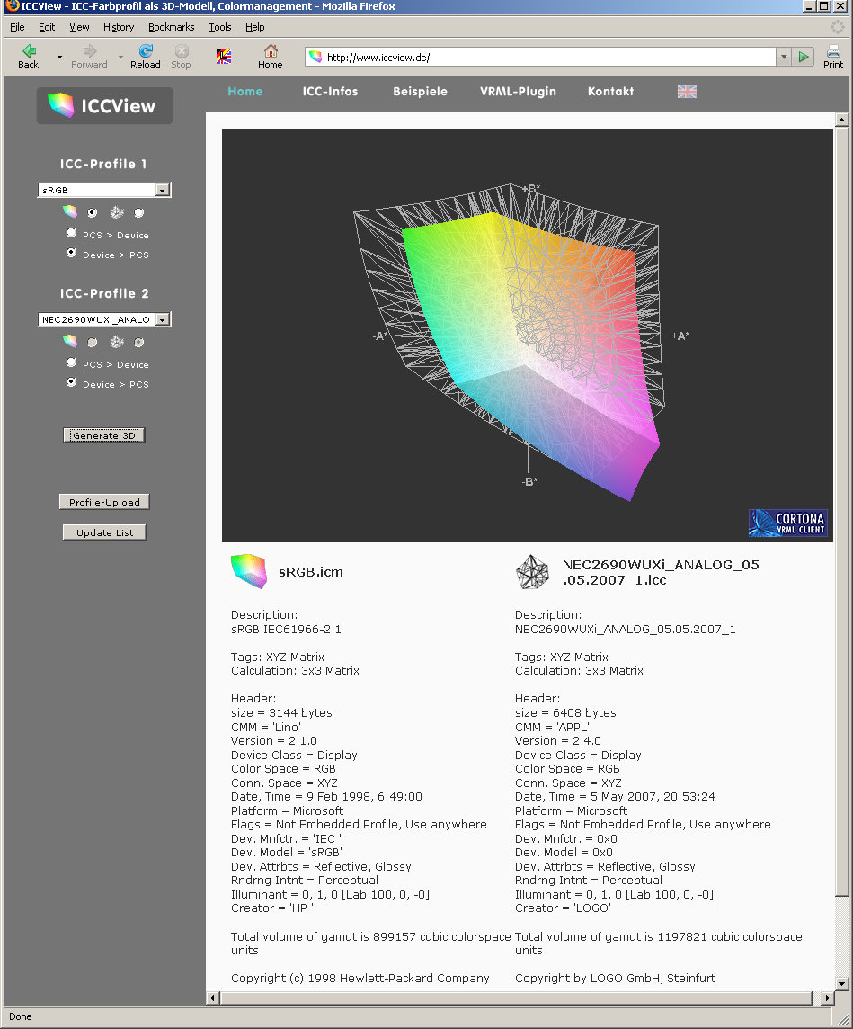 hier z.B. kannst Du hier Farbprofile online vergleichen.