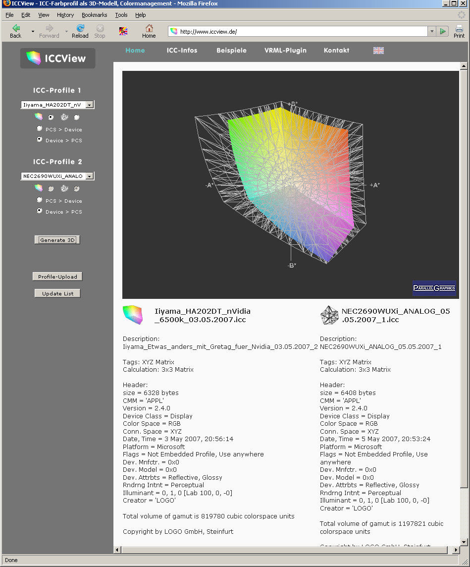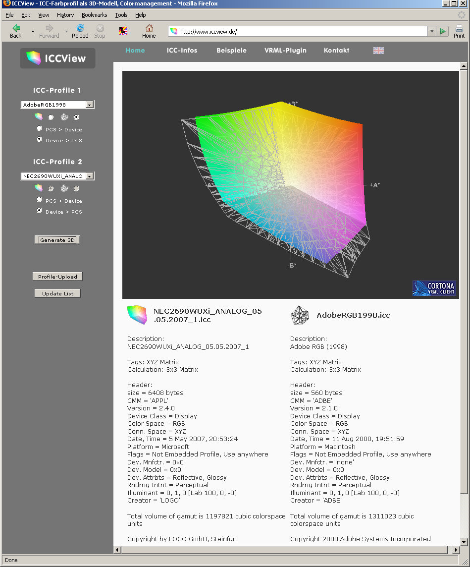 Angehängt findet ihr ein paar Screenshots, die ein paar Farbräume miteinander vergleichen. Darunter auch der 22" CRT, der durch den NEC ersetzt wurde.