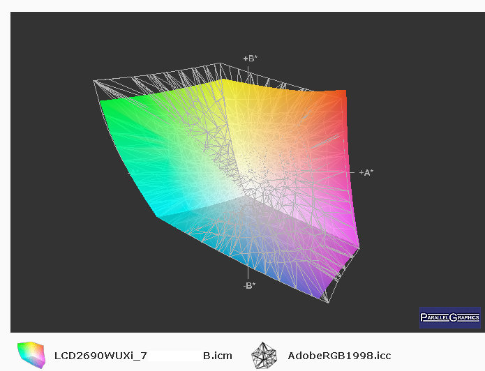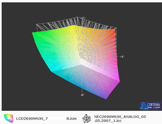 Ich habe meinen nagelneu eingetroffenen 2690WUXi eben ausgepackt und etwas genauer betrachtet. Die Kalibration (mit der Gretag-Software) läuft gerade. Natürlich werde ich die Spectraview II auch ausprobieren.