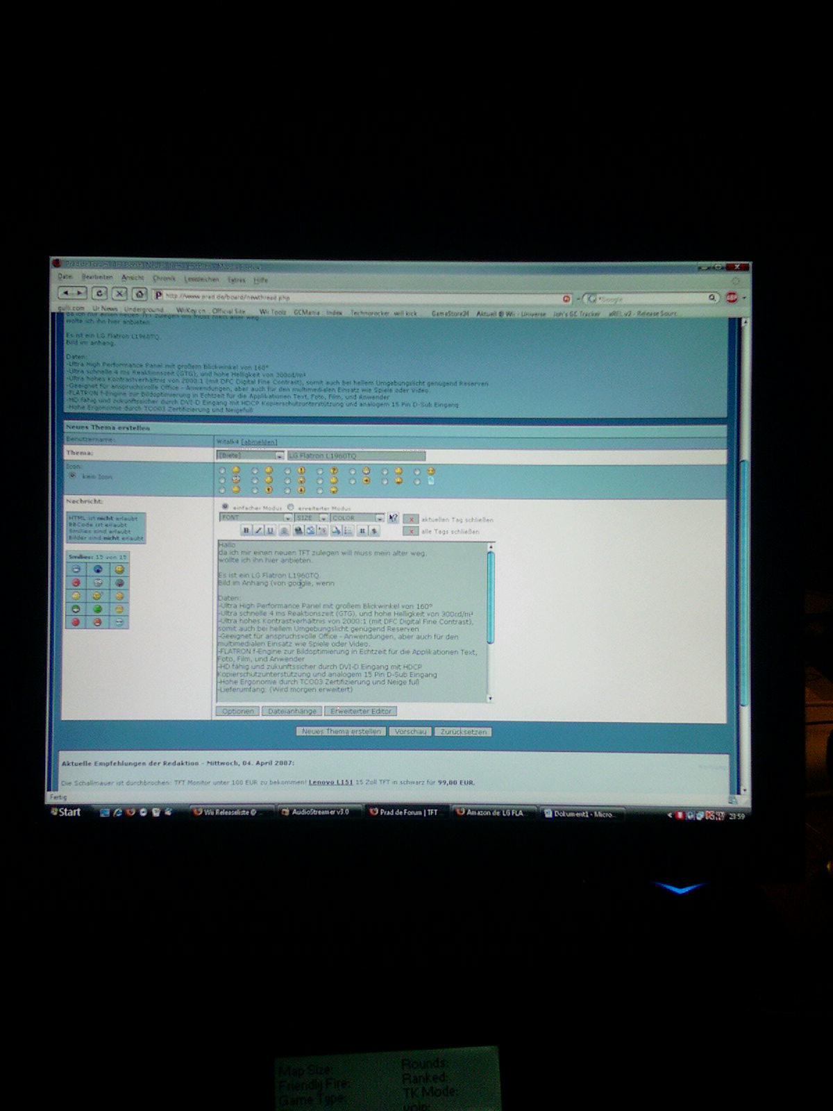da ich mir einen neuen TFT zulegen will muss mein alter weg.