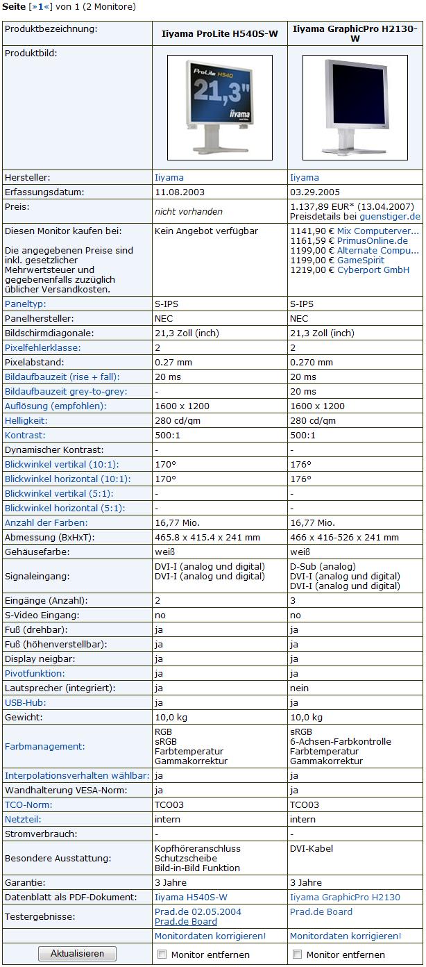 1x Iiyama ProLite H540S-W aus 11/04 mit Restgarantie