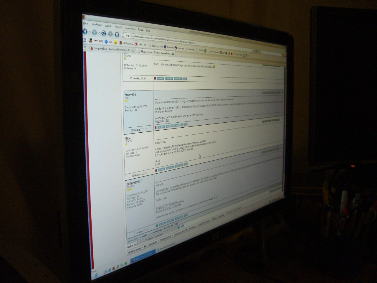von den seitlichen blickwinkeln und den farben her siehts wirklich fantastisch für ein tn-panel aus, aber die deutliche helligkeitszunahme von oben nach unten bzw. rechts nach links ist schon wirklich krass.